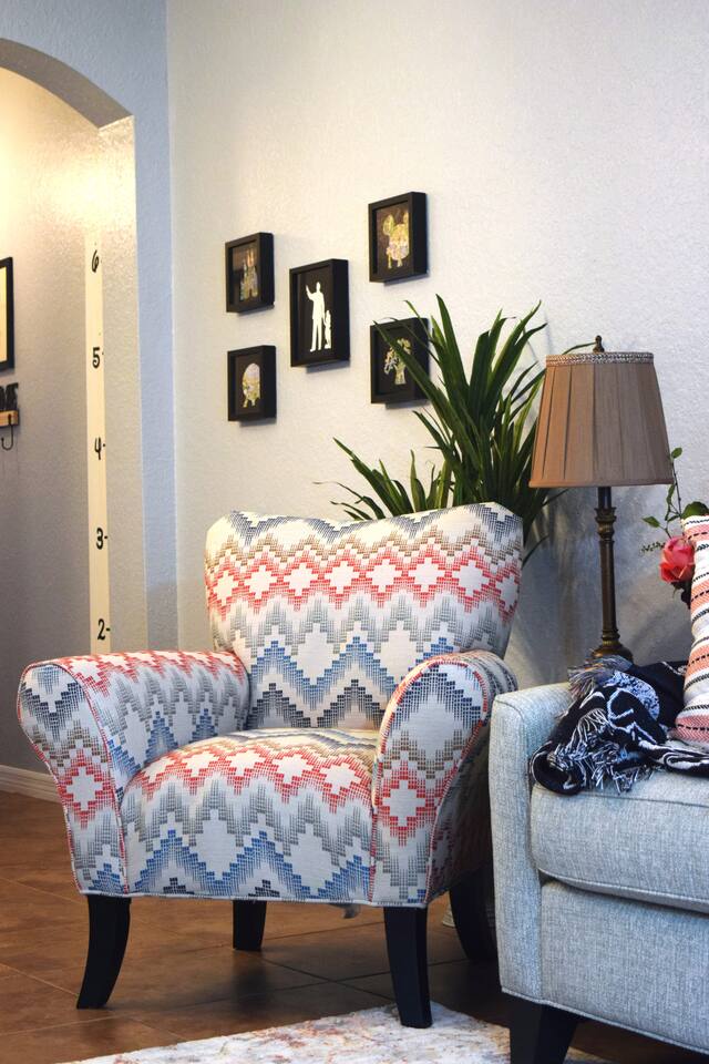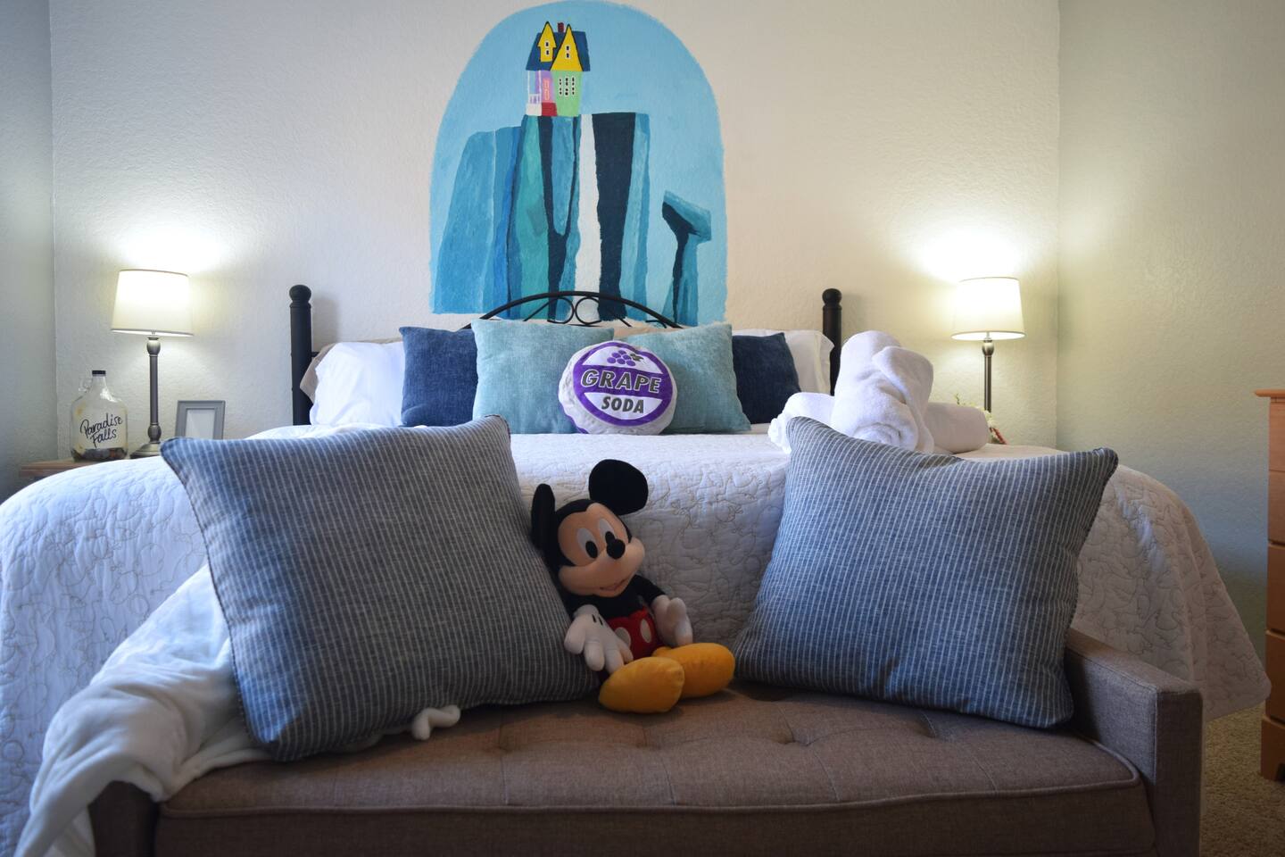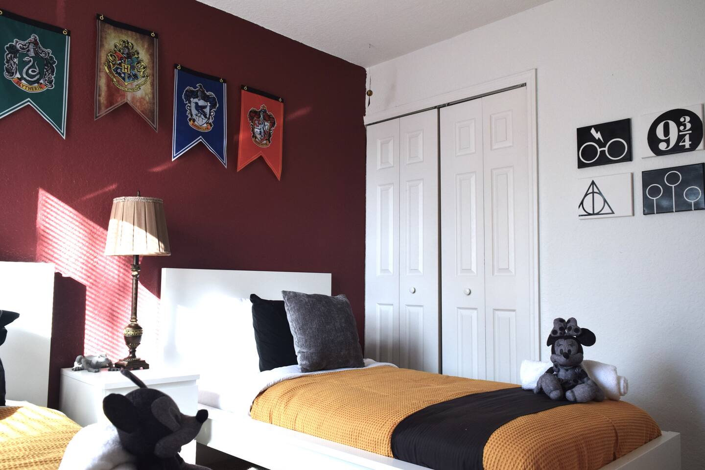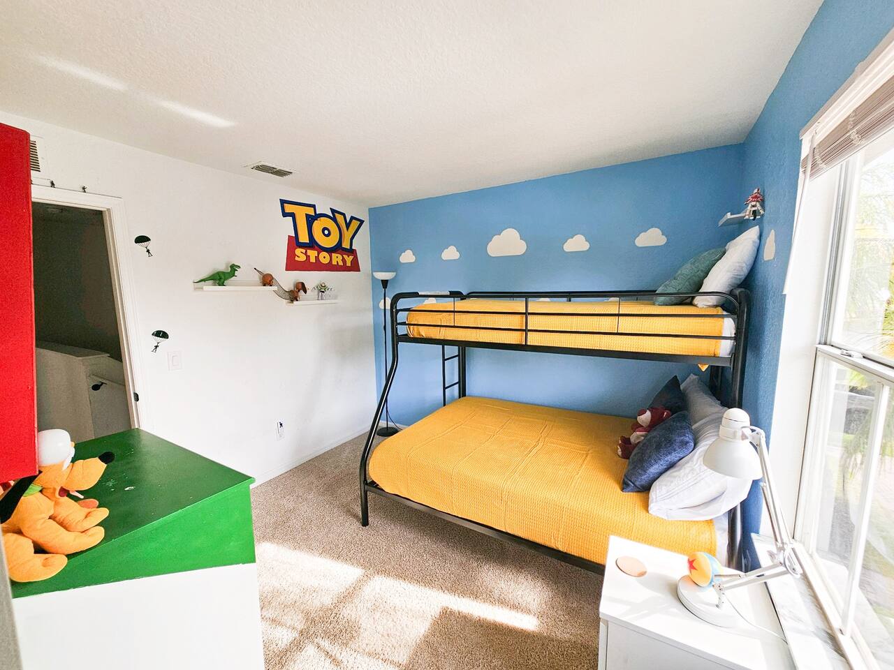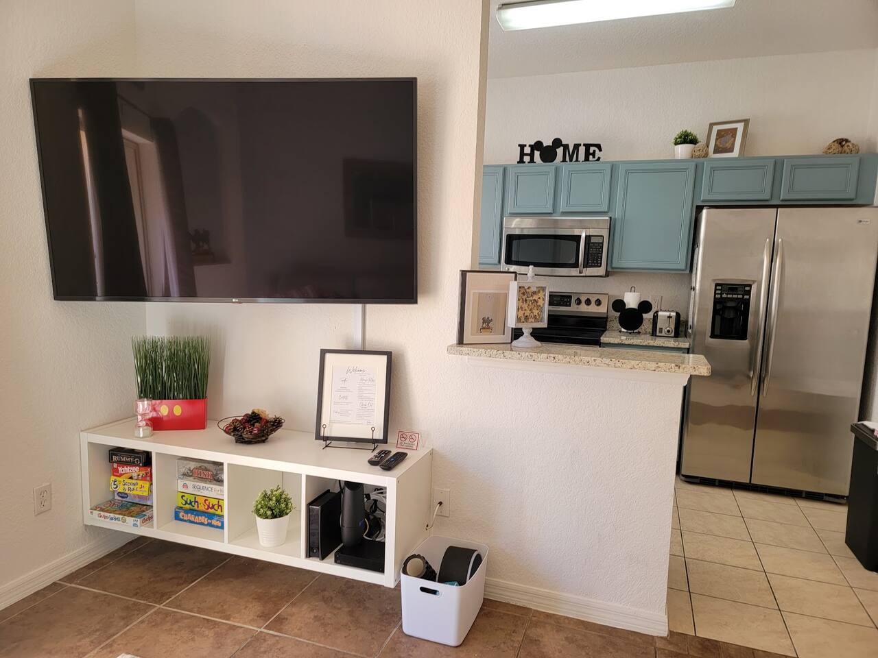 🏡 Your Home Away From Home at Mouse House Hideaway❤️ Relax in a beautifully themed 4-bedroom, 3-bath townhouse designed with families and fun in mind! ✨ Themed Bedrooms “UP” Master Suite – King pillow-top bed, 42" HDTV, private bathroom with soaker tub. “Toy Story” Room – Twin, full, and trundle beds; 32" HDTV. “Harry Potter” Room – Two twin beds; 32" HDTV. “Star Wars” Room – Queen pillow-top bed; 32" HDTV; attached shared bathroom. 🍽️ Fully Equipped Kitchen Keurig coffee maker, toaster, blender Pots, pans, cooking utensils Plates, cups, silverware Bottle opener and more 🛋️ Family Room & Dining Comfortable sofa and seating 65" HDTV – perfect for movies or sports Board games Dining table with benches and chairs Outdoor patio with two chairs 👶 Kid & Baby Gear Highchair Pack-n-play (Porta-crib) Sit/stand stroller Family-friendly amenities 💻 Other Amenities Free Wi-Fi & Cable TV Desk/workstation with monitor Washer & dryer Hairdryers in all bathrooms New dishwasher & granite countertops Private parking for 2 large or 3 small vehicles Comfortable furniture and quality mattresses --- 🌴 Regal Palms Resort Amenities (Just a 2-minute walk!) 2 Heated Pools & Lazy River Waterslide (fun for kids and adults!) Indoor & outdoor hot tubs Poolside lounge chairs Tiki Bar (seasonal) & family-friendly Bar & Grill Ice cream parlor Arcade room, playground, and fitness center Full-service Spa (by appointment) Small convenience store and business center Theme park ticket retailer Family crafts & weekend activities --- 🧴 What We Provide This is a self-service rental. We supply: 1 roll of toilet paper per bathroom 1 roll of paper towels Hand soap 1 dishwasher pod Additional supplies should be brought or purchased as needed.